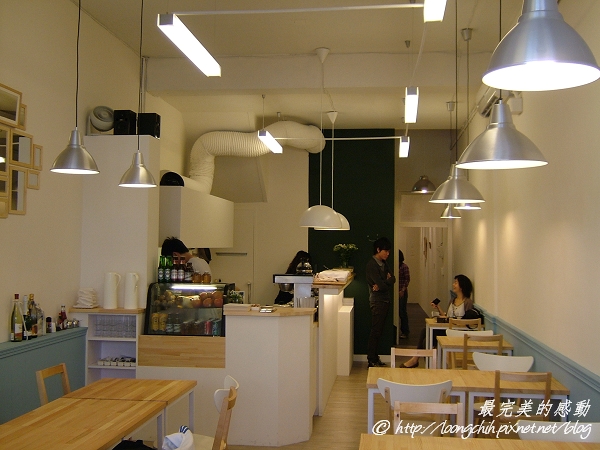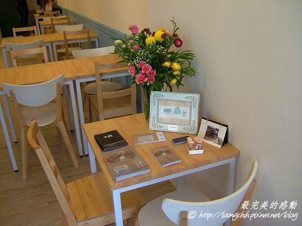 一進門就感受到店內強烈白色的風格,搭配上淡淡的灰藍色與原木木紋的桌椅,