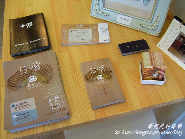 桌上擺滿日嚐小食以及附近的店家的名片,還有日嚐創展空間的展覽訊息