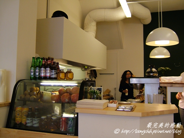 這是他們開放式的廚房,最右邊那台不銹鋼外觀的機器就是製作PANINI的機器