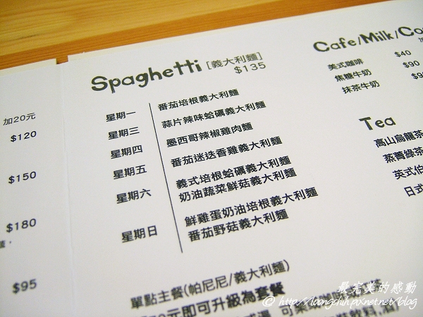 義大利麵隨著一星期的週期,也巧妙變化供應不同風味的義大利麵