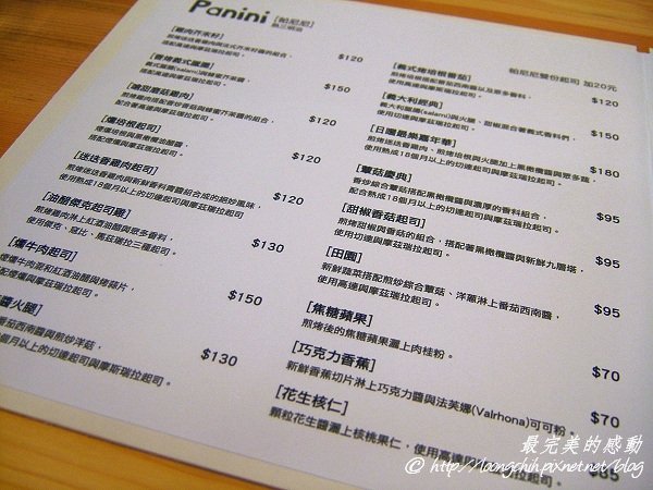 各式各樣PANINI的口味,單點價格最高約莫在180元左右