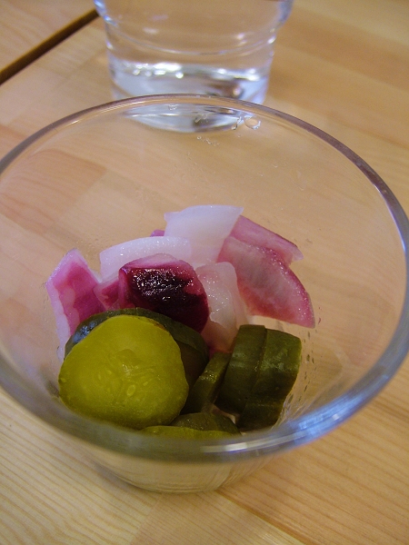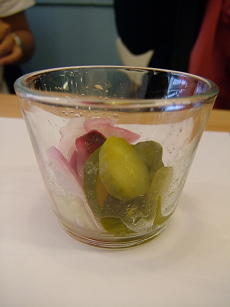 有酸黃瓜,洋蔥..等,黃瓜醃的比較透,
